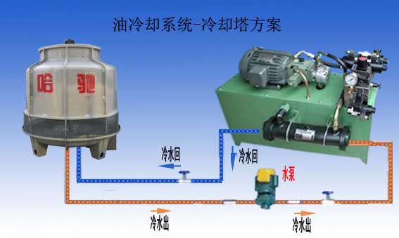 工業油冷卻方案: 1、在工業生產中經常會遇到機械設備在生產過程中導致油溫或機器溫度升高影響正常的工作效率。 2、冷卻油溫或冷卻機器可以選用冷卻水間接地去冷卻降低油溫或機器的溫度。 3、被冷卻的油可以是導熱油、液壓油、潤滑油、切削液、機油等各種液體介質。 4、選擇具體的工業冷卻塔參數請參照:http://www.hachi-china.cn 下面的方案就是選用工業冷卻塔來冷卻油溫,工作流程示意圖請參照以下圖片示例: